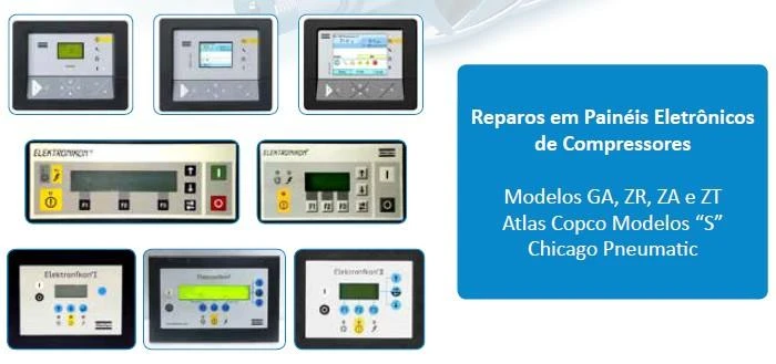 Os módulos eletrônicos são responsáveis por controlar e automatizar diversas funções dos compressores, como monitoramento de parâmetros, emissão de alarmes e execução de comandos.